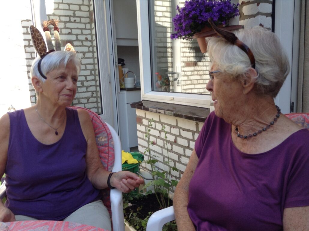 I visited Erna and Christine at their home in The Hague in 2013. They had arranged for me to give a workshop in Nonviolent Communication, so we set up tables in their flower-filled garden, and friends came to play the Feelings and Needs card game. Here’s a picture of Christine playing with my homemade cards.